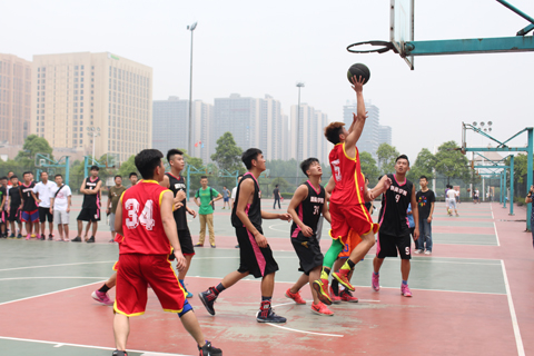 2015年5月14日中午12点30分,重庆大学第22届校园篮球赛半决赛之法学院对战新闻学院的比赛在虎溪校区梅园篮球场举行。法学院2013级辅导员刘冬梅以及2013级和2014级的许多同学都到场为篮球运动员们加油。
