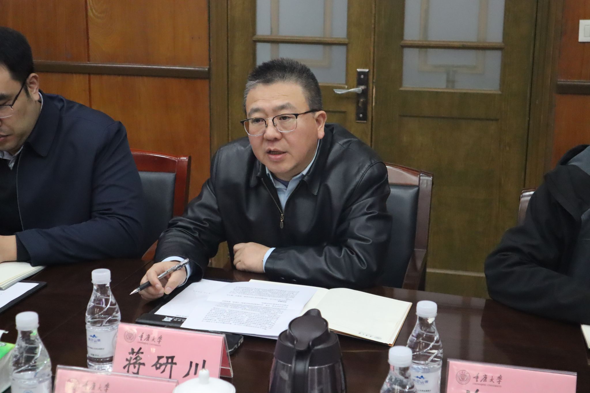 蒋研川对山东师范大学法学院一行到访表示热烈欢迎。他简要介绍了重庆大学法学院在历史沿革、人才培养、科学研究和社会服务等方面的基本情况。他表示,当前法学教育正处于变革之中,兄弟院校之间的互学互鉴至关重要。他希望通过此次坦诚深入的交流,双方能够分享经验、碰撞思想,共同探索高质量发展的有效路径,并以此为契机,建立长期稳定的合作关系。