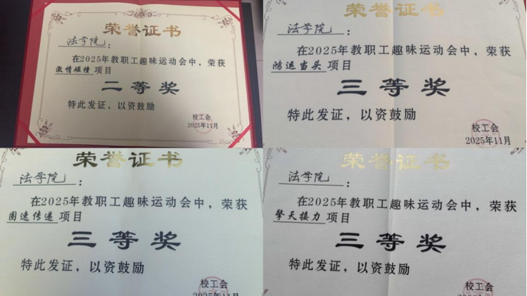 经过两个多小时精彩纷呈、热火朝天的角逐,法学院取得佳绩,“激烈碰撞”“鸿运当头”“擎天接力”“圈速传递”四个项目均获奖,其中“激烈碰撞”荣获二等奖,其余3个项目荣获三等奖。