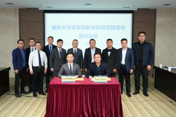 近日,重庆大学法学院与重庆百君律师事务所就共建教学科研实践基地,在重庆大学举行了签约仪式。重庆百君律师事务所主任韦锋、副主任周炜、张庆以及相关高级合伙人,重庆大学法学院党委书记蒋研川、院长靳文辉等法学院党政领导出席签约仪式。仪式由法学院副院长自正法主持。