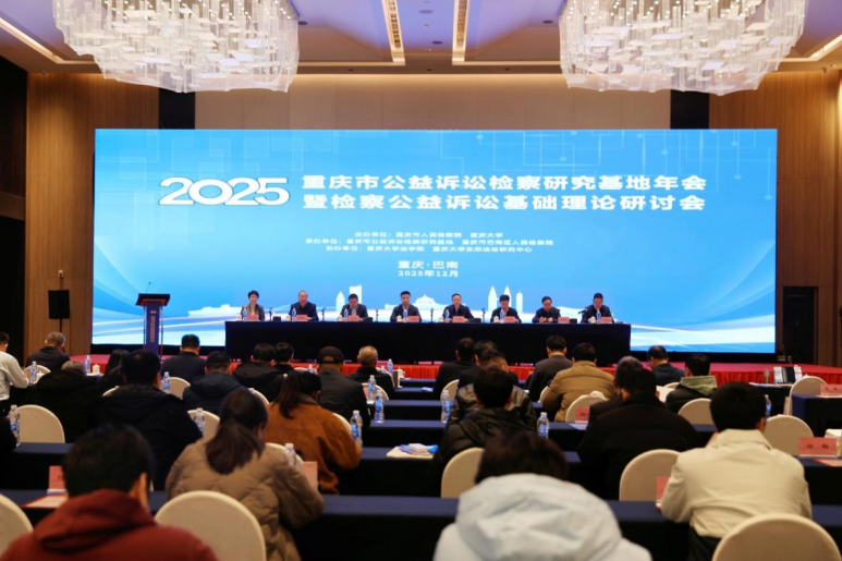 2025年12月26日,重庆市公益诉讼检察研究基地2025年年会暨检察公益诉讼基础理论研讨会在重庆市巴南区举行。会议由重庆市人民检察院、重庆大学主办,重庆市公益诉讼检察研究基地、重庆市巴南区人民检察院承办,重庆大学法学院、重庆大学生态法治研究中心协办。重庆大学党委常委、副校长杨俊,重庆市人民检察院党组成员、副检察长李大槐,巴南区委常委、政法委书记冉仁均出席开幕式并先后致辞。开幕式由重庆市人民检察院检委会专职委员冯兵主持。