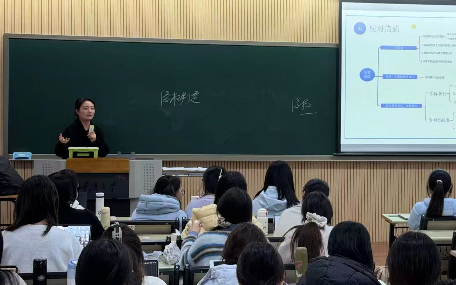 余丽从企业知识产权管理与风险防范的角度出发,结合自身实务经验,系统讲解了专利侵权纠纷的应对流程、侵权比对的具体操作、常用抗辩事由以及诉讼关键节点。借助真实案例的演绎,她引导学生深入体会知识产权法律实务在商业实践中的具体运用,进一步打通从理论认知到实践操作的联结。