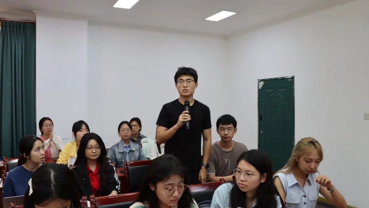 王乾沣代表主席团及书记处发言,他对新加入团委学生会的同学们表示热烈欢迎并介绍团学工作概况,强调工作纪律性,也鼓励各部门积极打造有特色的创新性活动。同时,他对本学期团学工作提出了几点注意事项,包括:为部门主办的活动预留策划与筹备的时间,注意院校联动活动的报名及相关材料的报送,加强各部门之间的联动等。