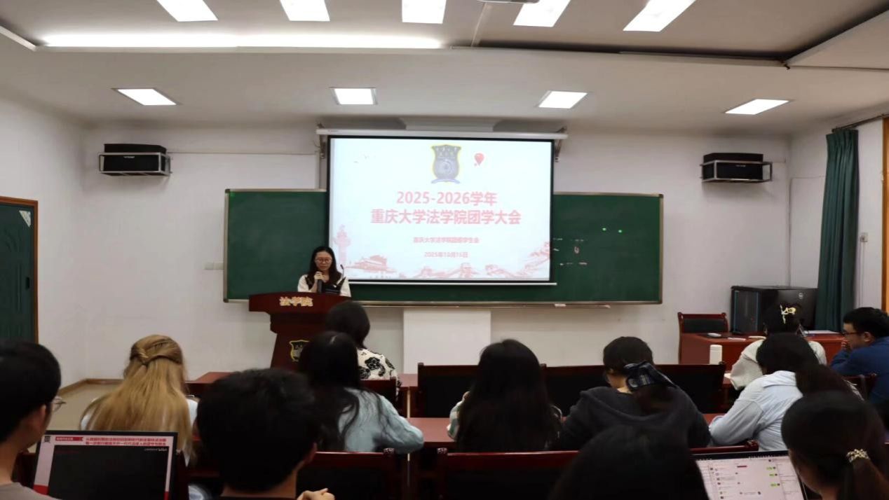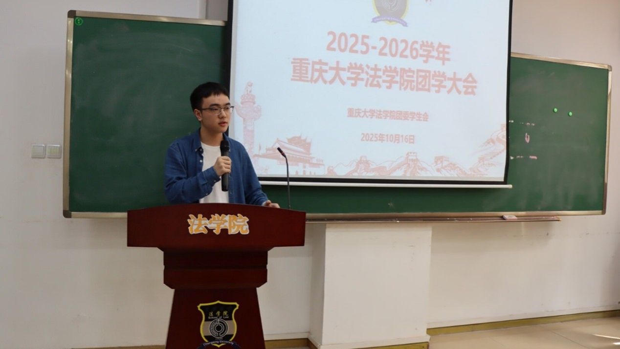 2025年10月16日下午1时,重庆大学法学院2025-2026学年团学大会在法学院107会议室召开。会议由法学院团委书记处负责人金佳琪主持,法学院团委书记张雅莹、团委学生会全体成员参加了本次会议。