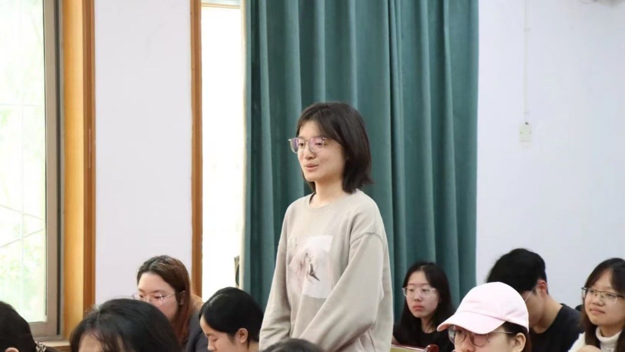 交流环节中,现场先后播放“家国与法治共生”“身边法学青年故事”两段主题视频,分别展现法治发展历程与学子实践风采,同学们就视频内容踊跃分享了自己的看法与感悟。张双羽结合自身对法学专业的认同与投身法治事业的志向,以鲜活故事具象化“法治守护家国”内涵。缪旻围绕“新时代法学青年如何落地家国情怀为法治担当”,提出“以法为尺量公平、以心为灯照法治路”的主张,引发全场共鸣。