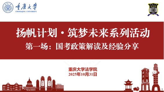 为助力法学院学子精准把握就业形势、提升就业竞争力,2025年10月31日,法学院举办国考政策解读及经验分享会。本次分享会是法学院“扬帆计划·筑梦未来”研究生就业系列活动之一,也是法学院“领航青春,‘职’引未来”校友职业经验分享系列活动之一,邀请了罗力铭、孙梦佳2名2025届优秀毕业生校友担任分享嘉宾。活动聚焦国考招录政策、备考经验、工作体会等核心问题,为有志投身中央国家机关工作的同学们提供方向与指导。