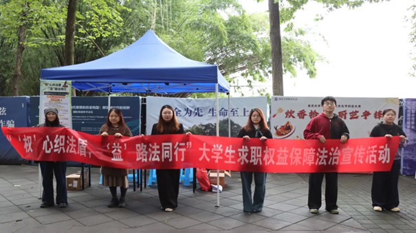 为增强大学生法治意识,提升维护求职权益能力,2025年11月8日,重庆大学法学院在沙坪坝校区A校园小竹林开展“‘权’心织法盾,‘益’路法同行”主题普法宣传活动。本次活动由重庆大学法学院团委学生会主办,吸引了众多同学参与。