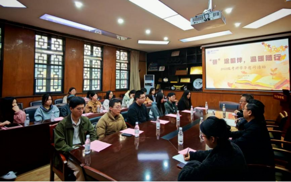 在2026年全国硕士研究生招生考试来临之际,为帮助备考同学缓解备考压力,提升备考士气,2025年11月21日,法学院在208会议室举办了“‘研’途相伴,温暖随行”2022级考研学子慰问活动。法学院党委书记蒋研川,党委副书记杨志杰,党委组织员、2022级辅导员刘勇,学办主任、2022级辅导员闫文睿,以及本科2022级考研学生代表参加活动。慰问活动由闫文睿主持。